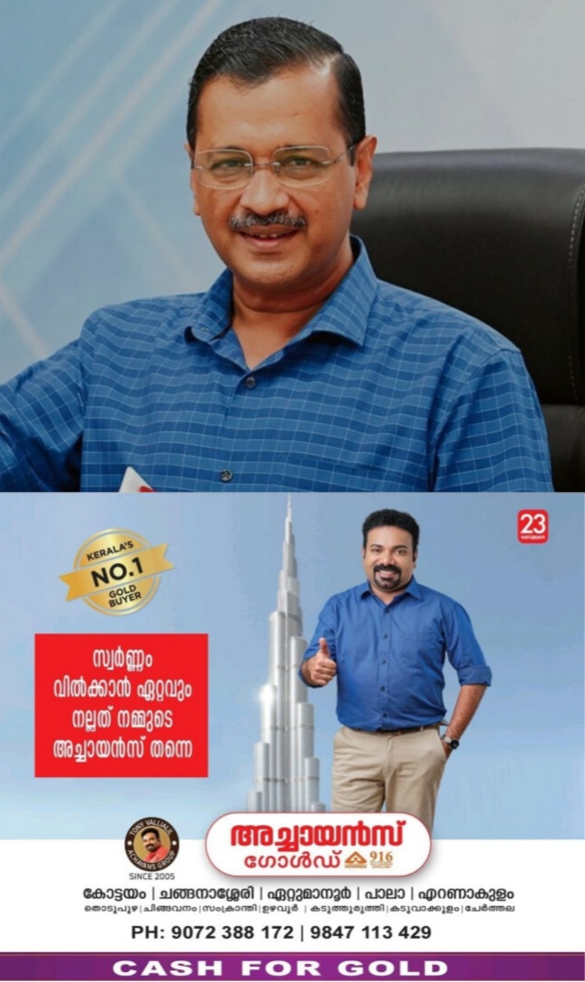 ഡല്ഹി മുന് മുഖ്യമന്ത്രി അരവിന്ദ് കെജ്രിവാള് ആയൂർവേദ ചികിത്സക്ക് വേണ്ടി കാഞ്ഞിരപ്പള്ളിയിൽ എത്തി.