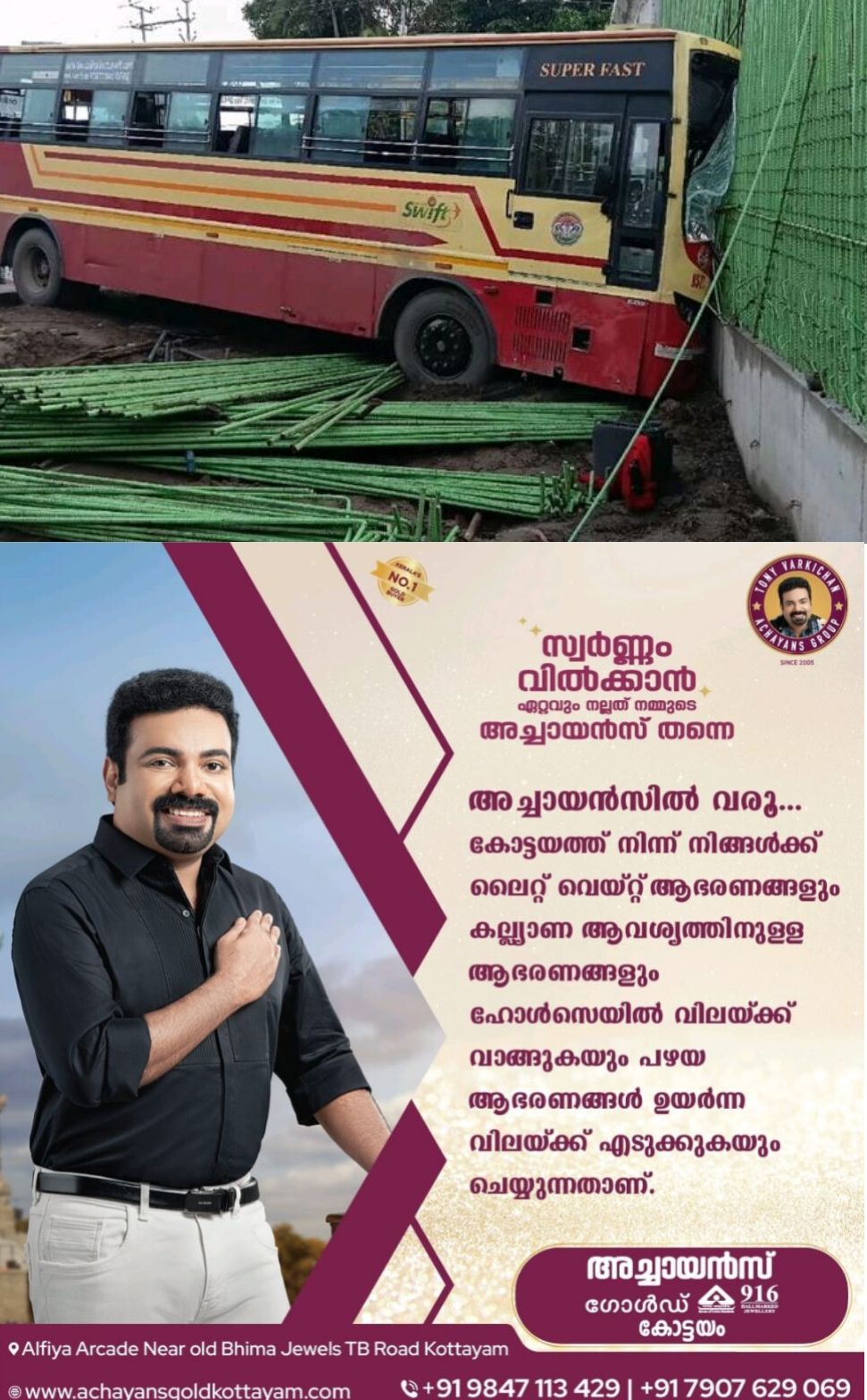 ഇന്ന് പുലര്ച്ചെ അഞ്ചുമണിയോടെയായിരുന്നു സംഭവം. തിരുവനന്തപുരം- കോയമ്പത്തൂര് ബസ് ആണ് അപകടത്തില്പ്പെട്ടത്. അടിപ്പാതാ നിര്മ്മാണം നടക്കുന്ന സ്ഥലത്തേക്ക് ഇടിച്ചു കയറിയാണ് അപകടമുണ്ടായത്.
