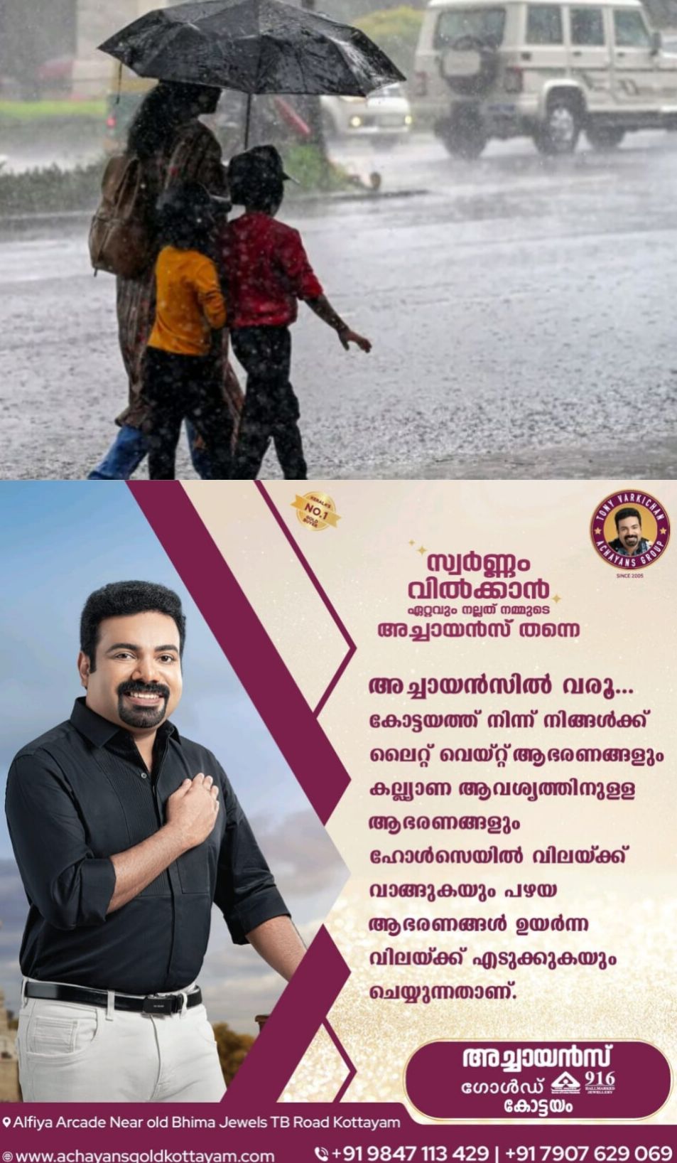 ഇടി മിന്നലോട് കൂടിയ മഴയ്ക്ക് സാധ്യതയുണ്ടെന്നും കേന്ദ്ര കാലാവസ്ഥാ വകുപ്പ് അറിയിച്ചു. വ്യാഴാഴ്ചയും അഞ്ച് ജില്ലകളില് യെല്ലോ അലേര്ട്ട് പ്രഖ്യാപിച്ചിട്ടുണ്ട്. തൃശൂര്, ഇടുക്കി, എറണാകുളം, കോട്ടയം, പത്തനംതിട്ട ജില്ലകളിലാണ് വ്യാഴാഴ്ച യെല്ലോ അലേര്ട്ട് നിലനിൽക്കുന്നത്.