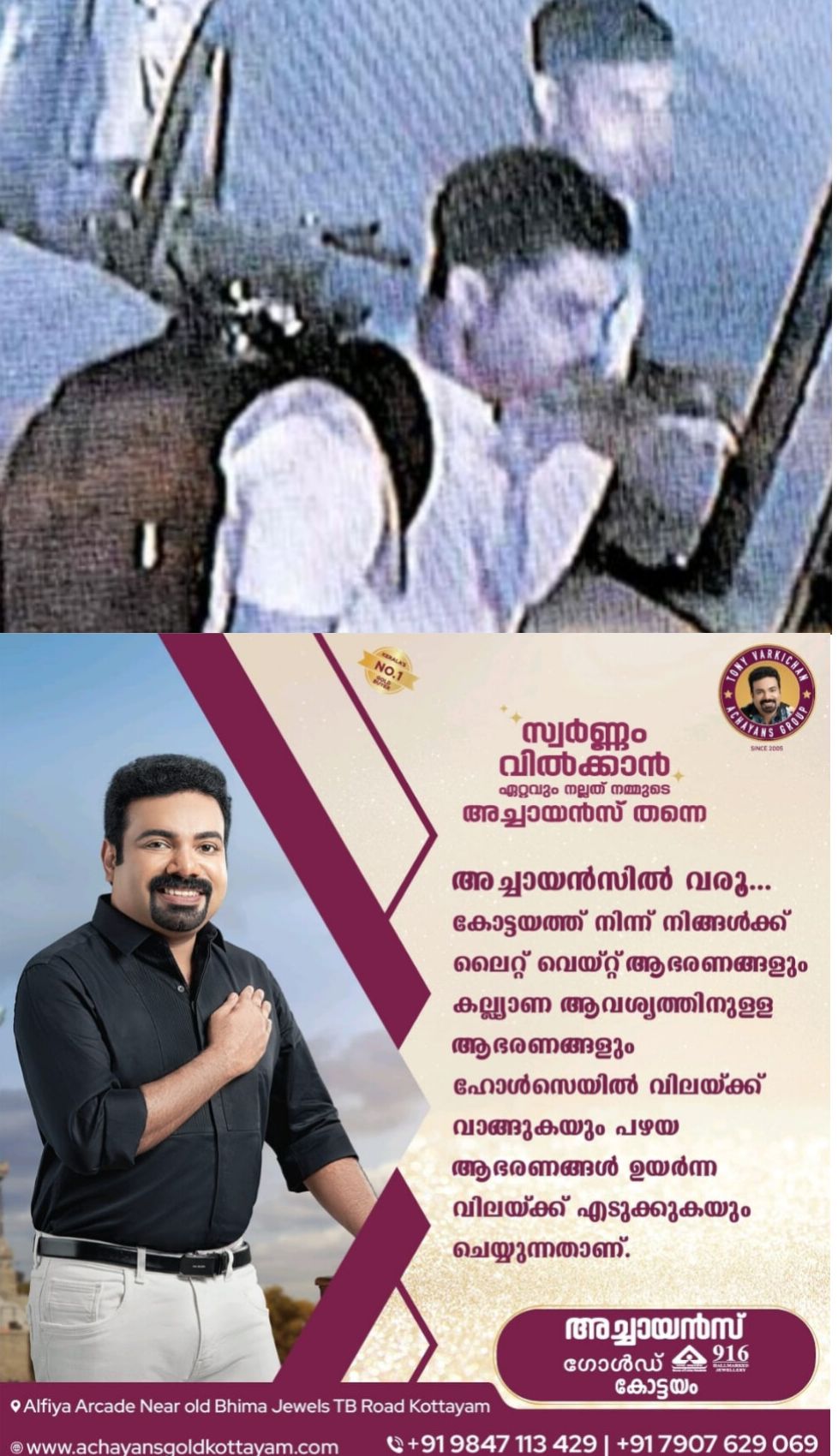 സ്വർണ വിൽപനശാലയുടെ പൂട്ട് തകർത്ത് 5 പവൻ സ്വർണവും ഒരു കിലോ വെള്ളിയും മോഷ്ടിച്ചു. മോഷാക്കളെന്ന് സംശയിക്കുന്ന 2 അതിഥിത്തൊഴിലാളികളുടെ ചിത്രം പൊലീസ് പുറത്ത് വിട്ടു. ചങ്ങനാശ്ശേരി തെങ്ങണ ജംക്ഷനു സമീപം സുരേഷ് എന്നയാളുടെ ഉടമസ്ഥതയിലുള്ള സ്ഥാപനത്തിലാണ് മോഷണം നടന്നത്. ഞായറാഴ്ച രാത്രിക്കു ശേഷമാണ് സംഭവമെന്ന് പൊലീസ് കരുതുന്നു. തിങ്കളാഴ്ച രാവിലെയാണ് ഉടമ സ്ഥാപനത്തിൻ്റെ പുട്ട് തകർന്നു കിടക്കുന്നത് കണ്ടത്