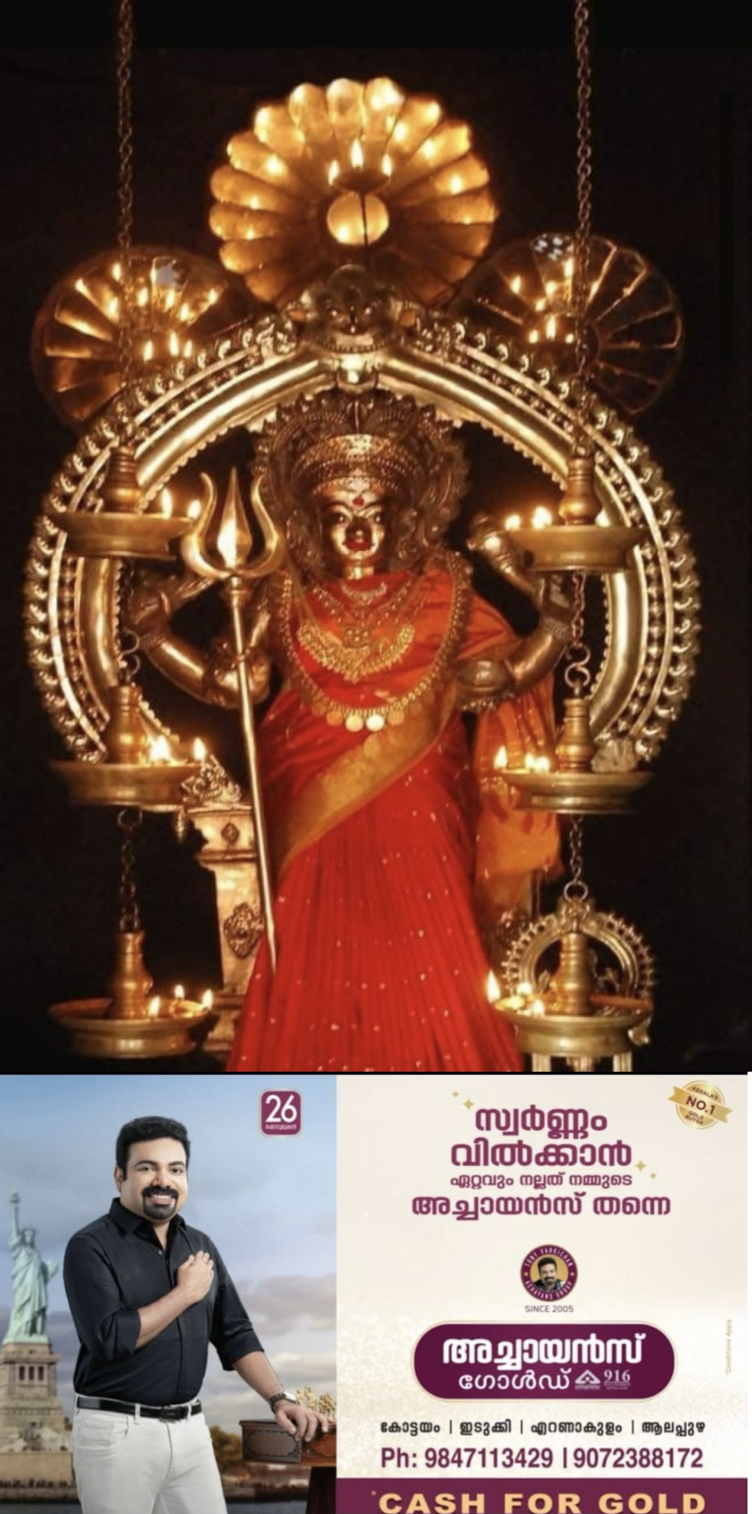 കോട്ടയം: മഹാകാളി, മഹാലക്ഷ്മി, മഹാസരസ്വതി, എന്നീ ശക്തി സ്വരൂപിണികളായ ദേവതകളെ അതിവിശിഷ്ഠമായ പൂജാകർമ്മങ്ങൾ കൊണ്ടു പ്രീതിപ്പെടുത്തുന്ന പൂജയാണ് നടക്കുന്നത്. വളരെ വിശിഷ്ടവും ഫലപ്രാപ്തിയും സിദ്ധിക്കുന്ന ഈ മഹത് കർമ്മത്തിൽ പങ്കാളികളാകാൻ എല്ലാ ഭക്ത ജനങ്ങളെയും ക്ഷേത്ര സന്നിധിയിലേക്കു ദേവീ നാമത്തിൽ ക്ഷണിച്ചുകൊള്ളുന്നു പൂജവയ്പ്പ് 2025 സെപ്റ്റംബർ 29, തിങ്കൾ (1201 കന്നി 13)വൈകുന്നേരം 6:30 ന് പൂജയെടുപ്പ്, വിദ്യാരംഭം 2025 ഒക്ടോബർ 2 വ്യാഴം