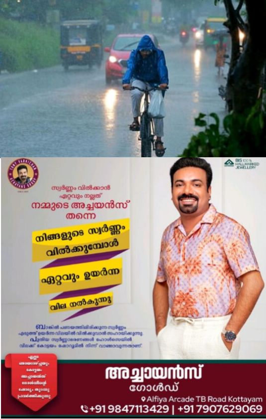 കോട്ടയം: അതിശക്തമായ മഴയ്ക്ക് സാധ്യതയുളളതിനാൽ കേന്ദ്ര കാലാവസ്ഥ വകുപ്പ് കോട്ടയം ജില്ലയിൽ ഇന്ന് (സെപ്റ്റംബർ 26) ഓറഞ്ച് അലെർട്ട് പ്രഖ്യാപിച്ചതായി ജില്ലാ കളക്ടർ ചേതൻ കുമാർ മീണ അറിയിച്ചു. ഒറ്റപ്പെട്ടയിടങ്ങളിൽ അതിശക്തമായ മഴയ്ക്കുള്ള സാധ്യതയാണ് പ്രവചിച്ചിരിക്കുന്നത്. 24 മണിക്കൂറിൽ 115.6 മില്ലിമീറ്റർ മുതൽ 204.4 മില്ലിമീറ്റർ വരെ മഴ ലഭിക്കുമെന്നാണ് അതിശക്തമായ മഴ (Very Heavy Rainfall) എന്നത് കൊണ്ട് കേന്ദ്ര കാലാവസ്ഥ വകുപ്പ് അർഥമാക്കുന്നത്.