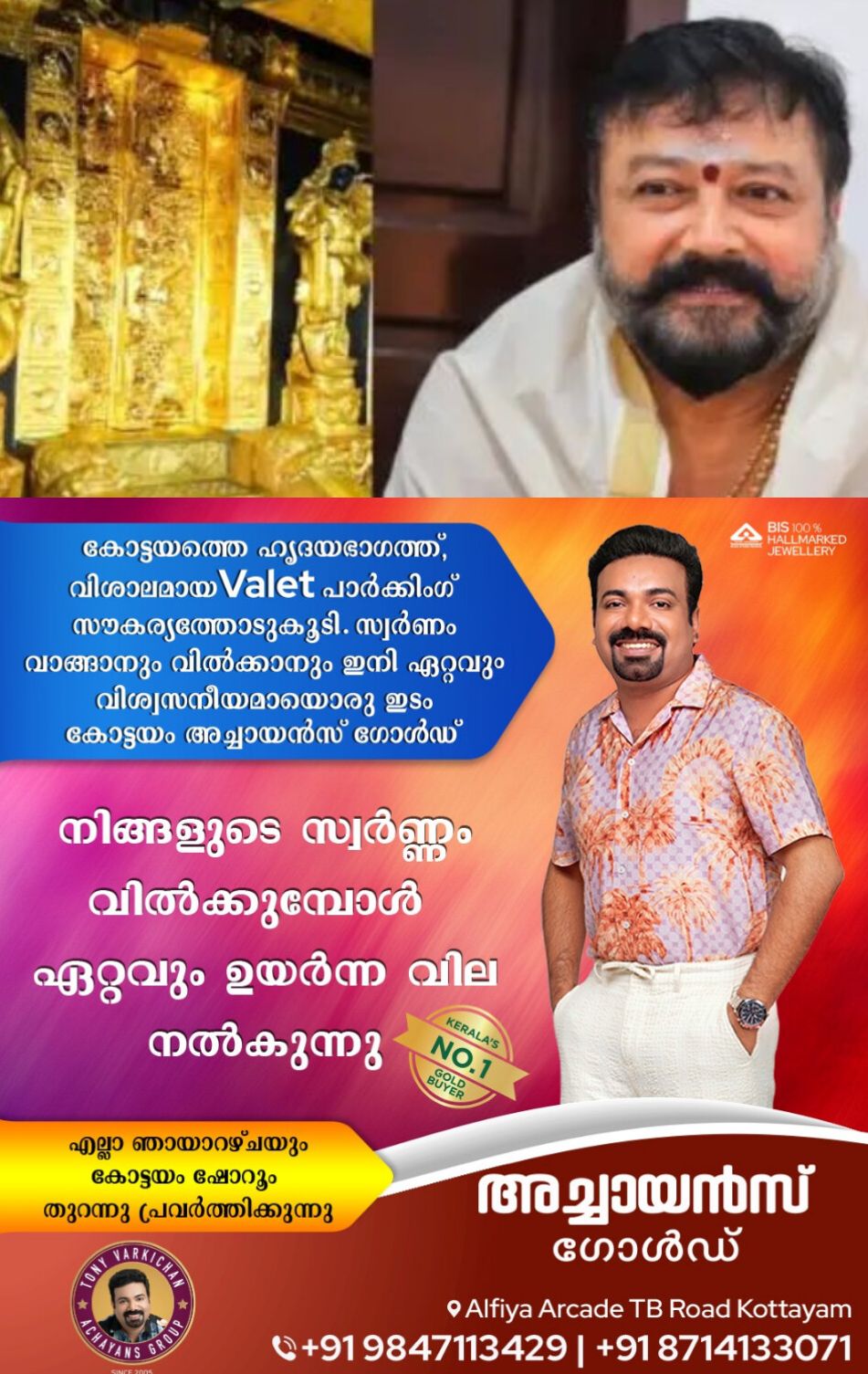 പൂജയില് പങ്കെടുക്കുന്നത് മഹാഭാഗ്യമായി താൻ കണക്കാക്കിയിരുന്നു എന്നും 5 വർഷത്തിന് ശേഷം അത് ഇങ്ങനെ അവസാനിക്കുമെന്ന് കരുതിയില്ലെന്നും ജയറാം പറഞ്ഞു. സത്യം തെളിയട്ടെ. തെറ്റ് ചെയ്തിട്ടുണ്ടെങ്കില് അതിനുള്ള ശിക്ഷ അനുഭവിച്ച് തന്നെ തീർക്കണം. അയ്യപ്പന്റെ ഒരു രൂപ പോലും തൊട്ടാല് പോലും അനുഭവിക്കേണ്ടിവരും. തെറ്റ് ചെയ്തവർ പിടിക്കപ്പെടണം എന്ന് ആഗ്രഹിക്കുന്നുവെന്ന് ജയറാം പറഞ്ഞു. ദേവസ്വം വിജിലൻസ് മൊഴിയെടുത്തുവെന്ന പ്രചാരണം ജയറാം തള്ളുകയും ചെയ്തു.