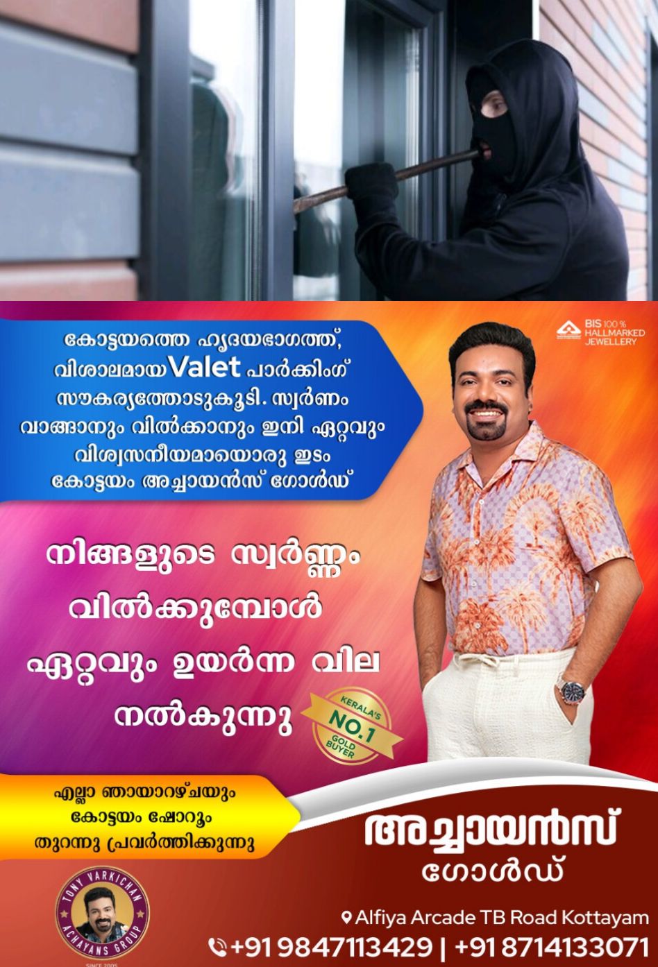 വീട് പൂട്ടി കുടുംബം ഗുരുവായൂർ ദർശനത്തിനു പോയ സമയത്താണ് മോഷണം നടന്നിരിക്കുന്നത്. വീടിന്റെ മുന്നിലെ പ്രധാന വാതിൽ കമ്പിപോലുള്ള വസ്തു ഉപയോഗിച്ച് തള്ളി കതകിന് നാശം വരുത്തിയാണ് കള്ളൻ അകത്ത് കടന്നിരിക്കുന്നത്. അലമാരിയിൽ സൂക്ഷിച്ചിരുന്ന ആദർശിൻ്റെ ഭാര്യയുടെ സ്വർണ്ണാഭരണങ്ങളും രണ്ട് നിലവിളക്കും ഒരു ആറന്മുള കണ്ണാടിയുമാണ് മോഷണം പോയിരിക്കുന്നത്.