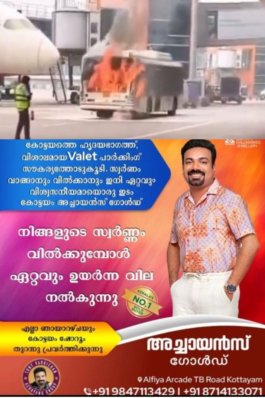 ഒന്നിലധികം വിമാനക്കമ്പനികൾക്ക് ഗ്രൗണ്ട് സർവീസുകൾ കൈകാര്യം ചെയ്യുന്ന എസ്എടിഎസ് എയർപോർട്ട് സർവീസസ് പ്രൈവറ്റ് ലിമിറ്റഡിന്റെ ബസാണ് കത്തിയത്. സംഭവത്തിൽ എയർപോർട്ട് അതോറിറ്റി അന്വേഷണം പ്രഖ്യാപിച്ചിട്ടുണ്ട്.