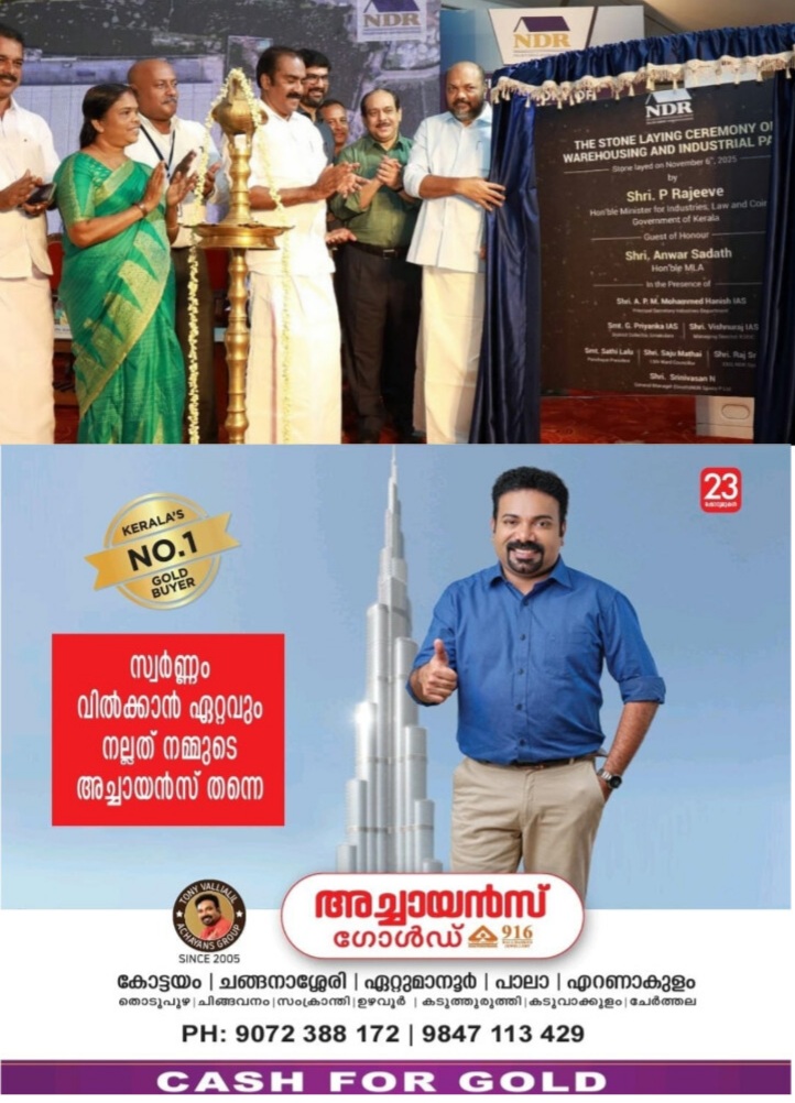 ആലുവ ചുണങ്ങൻവേലിക്കടുത്ത്, ഇൻവെസ്റ്റ് കേരളാ ഉച്ചകോടിയിലൂടെ വന്ന നൂറാമത്തെ പദ്ധതിയായ NDR സ്പേസ് പ്രൈവറ്റ് ലിമിറ്റഡിന്റെ വെയർഹൗസിങ് ആൻഡ് ലോജിസ്റ്റിക്സ് ശൃംഖലക്ക് തറക്കല്ലിട്ടു കൊണ്ട് സംസാരിക്കുകയായിരുന്നു മന്ത്രി.