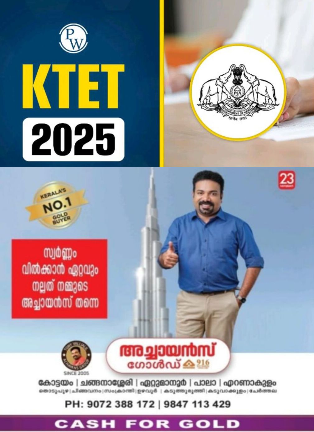 കോട്ടയം: സെപ്റ്റംബര് 18,19 തീയതികളില് കോട്ടയം എം.ടി. സെമിനാരി എച്ച്.എസ്, സെന്റ് ജോസഫ് കോണ്വെന്റ് എച്ച്.എസ്, ബേക്കര് മെമ്മോറിയല് ഗേള്സ് എച്ച്.എസ് എന്നീ കേന്ദ്രങ്ങളില് നടന്ന കെ-ടെറ്റ് പരീക്ഷയില് വിജയിച്ചവരുടെ സര്ട്ടിഫിക്കറ്റ് പരിശോധന ഡിസംബര് 20,22 തീയതികളില് നടക്കും.