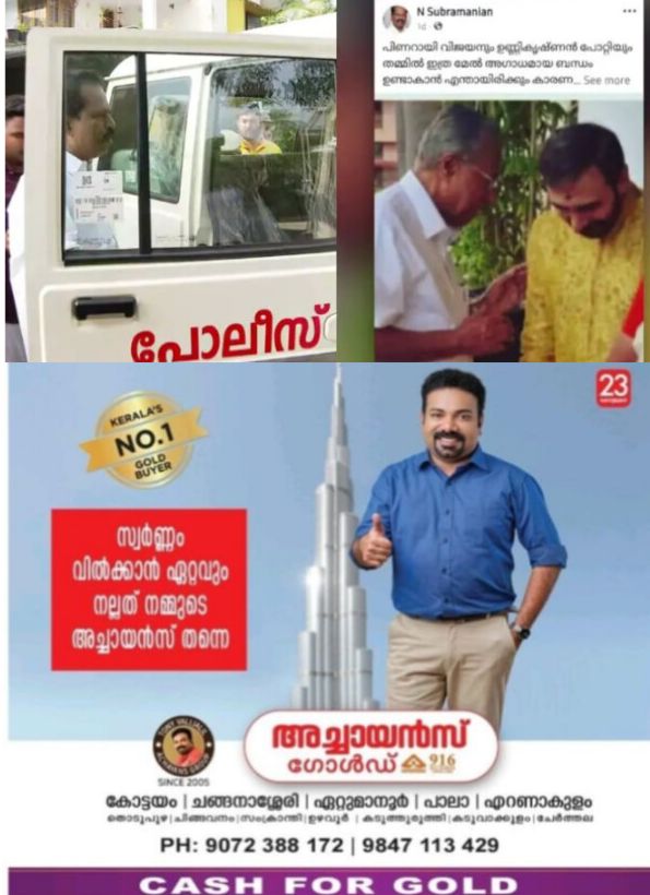 പിണറായി വിജയനും ഉണ്ണിക്കൃഷ്ണന് പോറ്റിയും തമ്മില് ഇത്രമേല് അഗാധമായ ബന്ധം ഉണ്ടാകാന് എന്തായിരിക്കും കാരണമെന്ന കാപ്ഷനോടെയാണ് ഇരുവരും ഒരുമിച്ചു നില്ക്കുന്ന ഫോട്ടോകള് കെപിസിസി രാഷ്ട്രീയകാര്യസമിതി അംഗവും കോഴിക്കോട് ജില്ലിയിലെ മുതിര്ന്ന നേതാവുമായ എന് സുബ്രമണ്യന് പോസ്റ്റിട്ടത്. പ്രചരിപ്പിക്കപ്പെടുന്നത് എഐ ഫോട്ടോയാണെന്ന് സിപിഎം നേതാക്കള് ആവര്ത്തിക്കുന്നതിന് പിന്നാലെയാണ് കെപിസിസി രാഷ്ട്രീയ കാര്യസമിതി അംഗം സുബ്രമണ്യനെതിരെ കലാപാഹ്വാനത്തിന് ചേവായൂര് പൊലീസ് കേസെടുത്തത്.