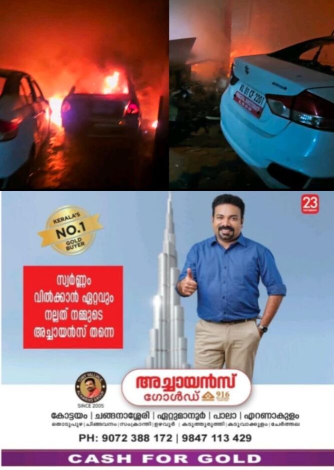 ചവറിന് തീപിടിച്ച് കത്തുന്നത് കണ്ടവരാണ് അഗ്നിരക്ഷാസേനയെ വിവരം അറിയിച്ചത്. എന്നാൽ തീ പെട്ടന്ന് പരിസരത്തു കിടന്ന കാറിലേക്ക് പടരുകയായിരുന്നു. പുലർച്ചെ അഞ്ചോടെയായിരുന്നു സംഭവം. ഉപയോഗിക്കാതെ മാറ്റിയിട്ടിരുന്ന കാറും പുതിയ കാറുമാണ് പൂർണമായി കത്തിന ശിച്ചത്.