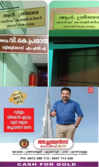 എംഎൽഎ വി.കെ. പ്രശാന്തിന്റെ നെയിംബോർഡിന് തൊട്ട് മുകളിലായാണ് കൗൺസിലർ പുതിയ ബോർഡ് സ്ഥാപിച്ചത്.