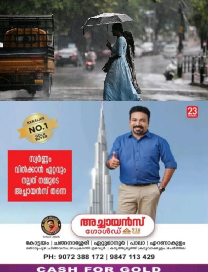 സംസ്ഥാനത്തിൻ്റെ തെക്കൻ, മധ്യ ജില്ലകളിൽ ഇന്ന് മഴ സാധ്യത പ്രവചിക്കുന്നു.