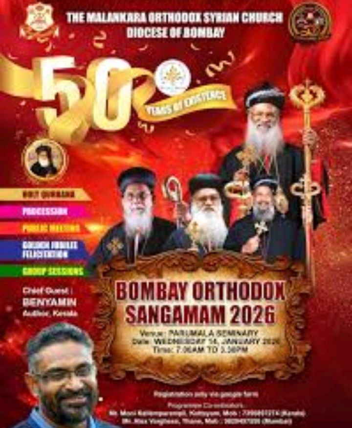ഓർത്തഡോക്സ് സഭ ബോംബെ ഭദ്രാസനത്തിൻ്റെ 50-ാം വാർഷികാഘോഷ സമാപനം ഫെബ്രുവരി 1ന്. വാശി അരമനയിൽ വച്ചാണ് ജൂബിലി സമാപനം.